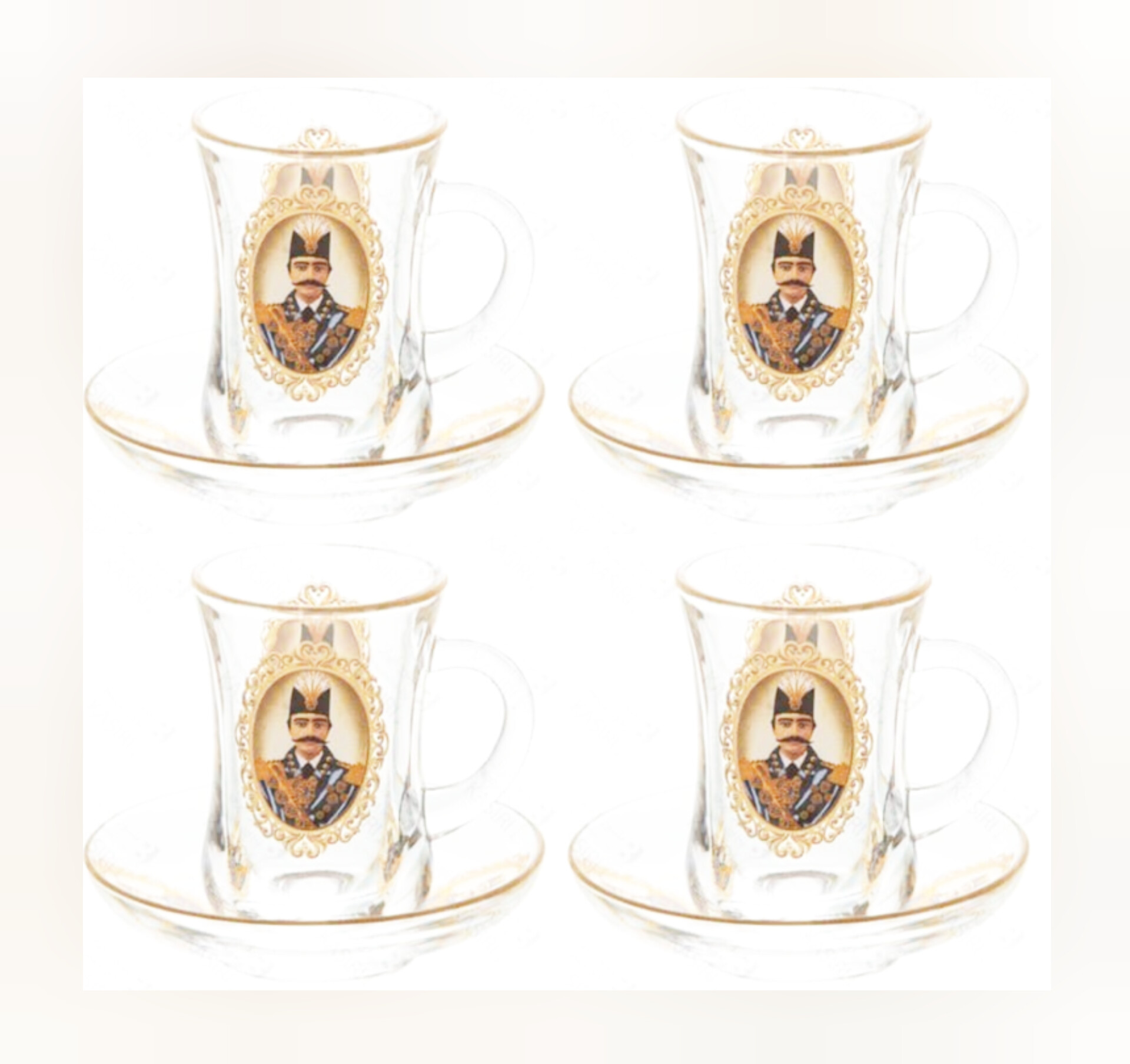 Shah Abbasi glass and saucer set with handle